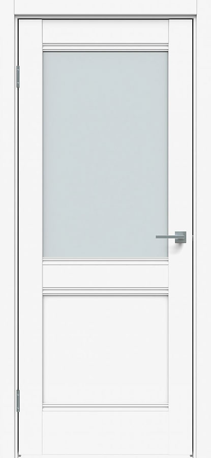 Отделка двери: царговая панель, покрытие Экошпон, матовое стекло, цвет Сатин белый.