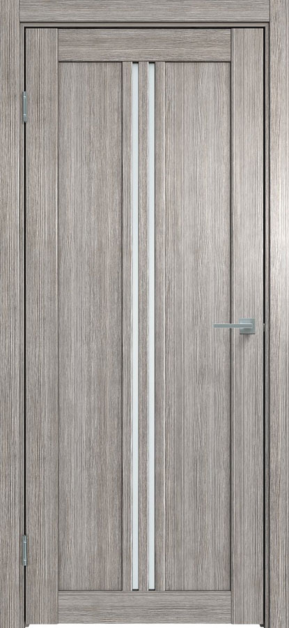 Отделка двери: царговая панель, покрытие Экошпон, стеклянные матовые вставки Satinato, цвет Лиственница серая.