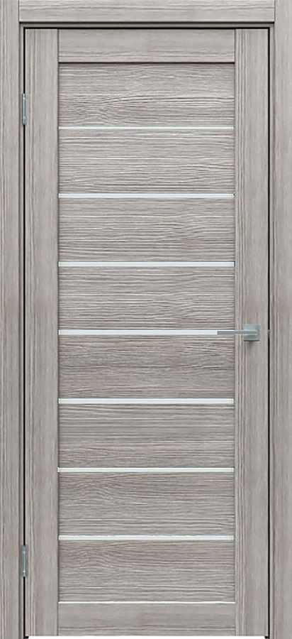Отделка двери: царговая панель, покрытие Экошпон, стеклянные матовые вставки Satinato, цвет Лиственница серая.