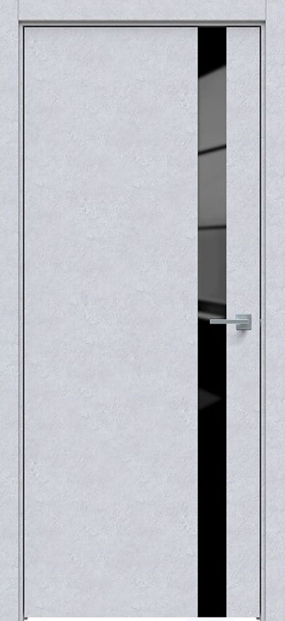 Отделка двери: царговая панель, покрытие Экошпон, стеклянная черная вставка, цвет Бетон снежный.