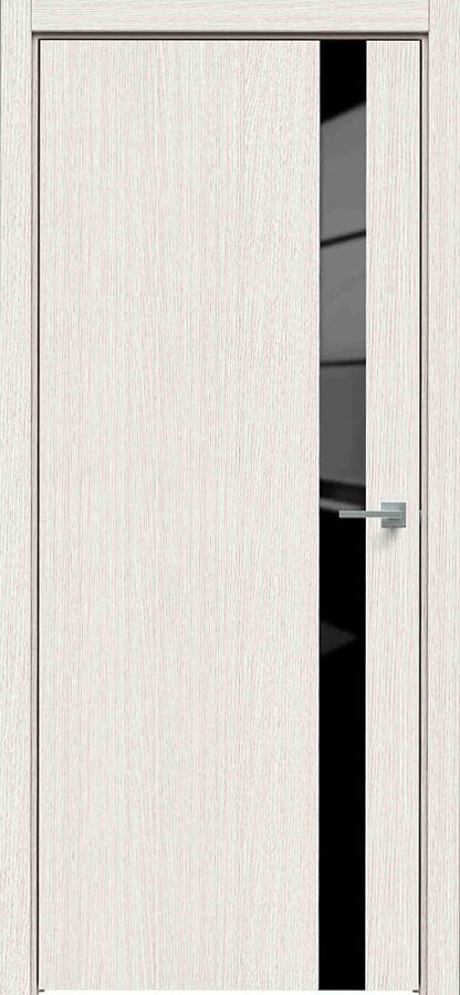 Отделка двери: царговая панель, покрытие Экошпон, стеклянная черная вставка, цвет Дуб французский.