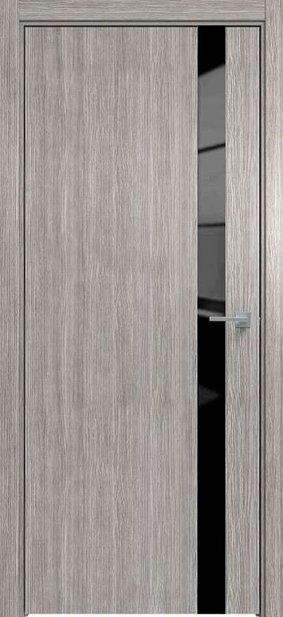 Отделка двери: царговая панель, покрытие Экошпон, стеклянная черная вставка, цвет Лиственница серая.