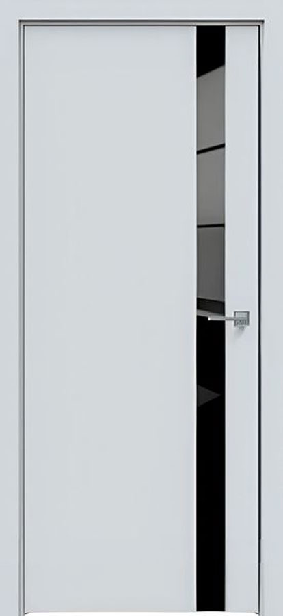 Отделка двери: царговая панель, покрытие Экошпон, стеклянная черная вставка, цвет Сатин серый.