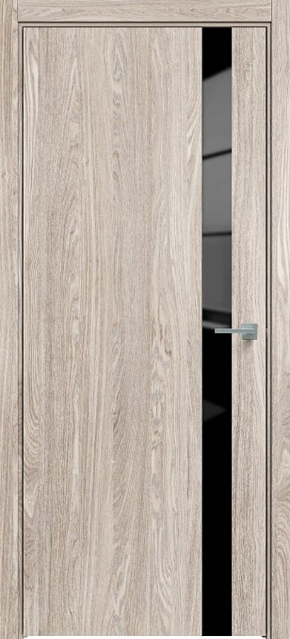 Отделка двери: царговая панель, покрытие Экошпон, стеклянная черная вставка, цвет Дуб капучино.