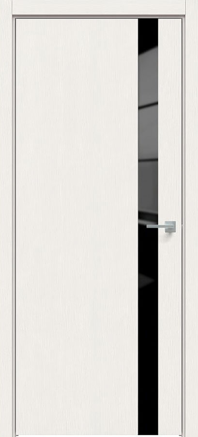 Отделка двери: царговая панель, покрытие Экошпон, стеклянная черная вставка, цвет Мелинга белая.