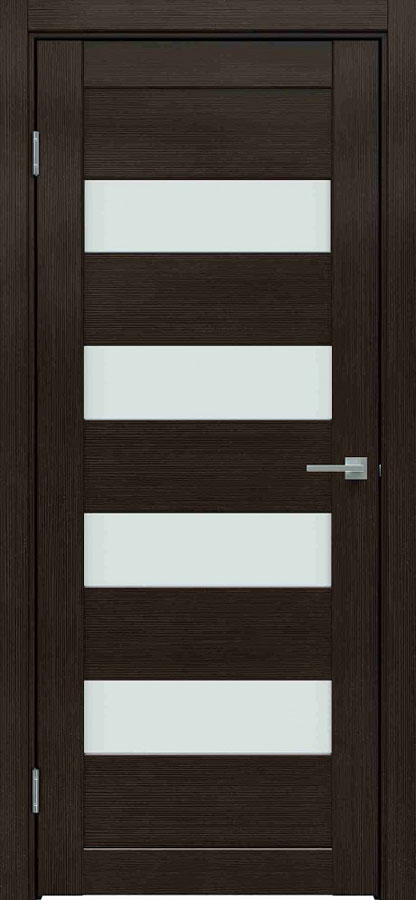 Отделка двери: царговая панель, покрытие Экошпон, стеклянные матовые вставки Satinato, цвет Орех макадамия.