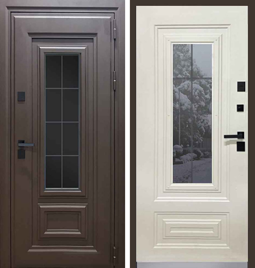 Конкорд - качественная, надежная входная дверь с технологией терморазрыва производства компании "Лекс" Россия, г. Йошкар-Ола. Наружная отделка двери Конкорд - металл, который окрашен в 3 слоя, стекло, цвет Муар коричневый, отделка внутри - фрезерованная МДФ панель с ударопрочным стеклом, цвет Белая шагрень.