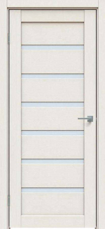 Отделка двери: царговая панель, покрытие Экошпон, стеклянные матовые вставки Satinato, цвет Мелинга белая.
