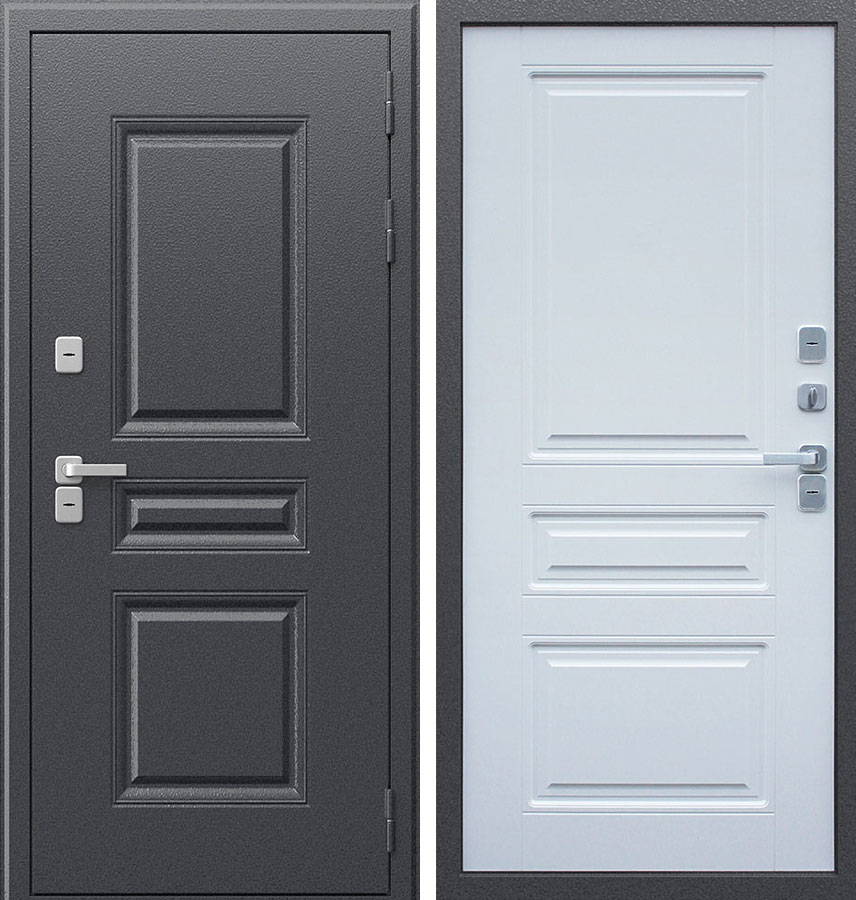 Диксон термо - качественная, надежная входная дверь производства компании "АСД". Внешняя отделка двери Диксон термо - металл, декоративный штамп на металле, порошковое покрытие, цвет Букле графит, внутренняя - панель МДФ толщиной 10 мм, объемная фрезеровка, цвет Белый матовый.