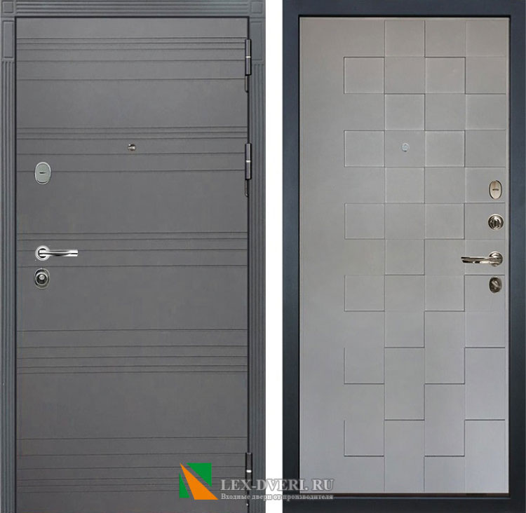 Лекс Легион 3К Софт графит Софт графит Квадро (панель №72) - качественная, надежная входная дверь производства компании "Лекс" Россия, г. Йошкар-Ола. Дверь Лекс Легион 3К Софт графит снаружи отделана фрезерованной МДФ панелью с краями с фасадной обкаткой, а внутри фрезерованной МДФ панелью с антивандальной ПВХ-пленкой, рисунок Квадро.