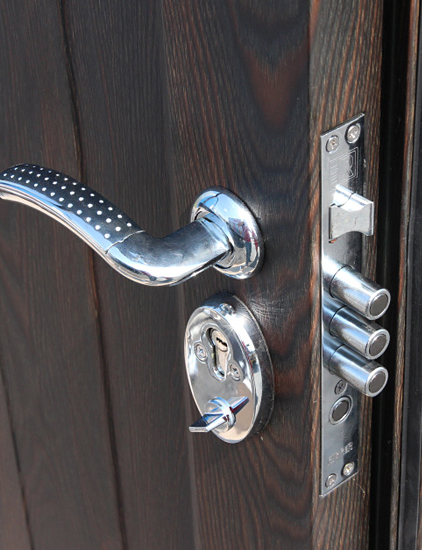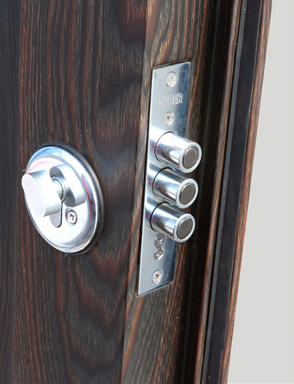 - Основной замок: цилиндровый, 3-х ригельный + ночная задвижка. Диаметр ригелей 18 мм.
